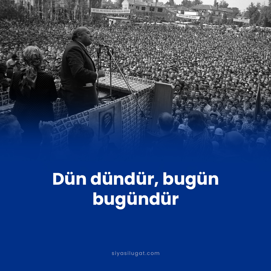 Demirel‘in siyasi pragmatizmini ve durumsal esnekliğini en iyi özetleyen, adeta onunla özdeşleşmiş bir aforizmadır. Bu söz, geçmişte söylenen sözlerin veya alınan pozisyonların bugünün koşullarında geçerli olmayabileceğini ifade eder. Siyasi işlevi, politika değişikliklerini, yeni ittifakları veya çelişkili gibi görünen adımları meşrulaştırmaktır. Eleştirenler tarafından ilkesizlikle suçlansa da, Demirel bu ifadeyi siyasetin katı ideolojilerle değil, değişen şartlara göre çözüm üretme sanatı olduğu yönündeki felsefesini savunmak için kullanmıştır.
